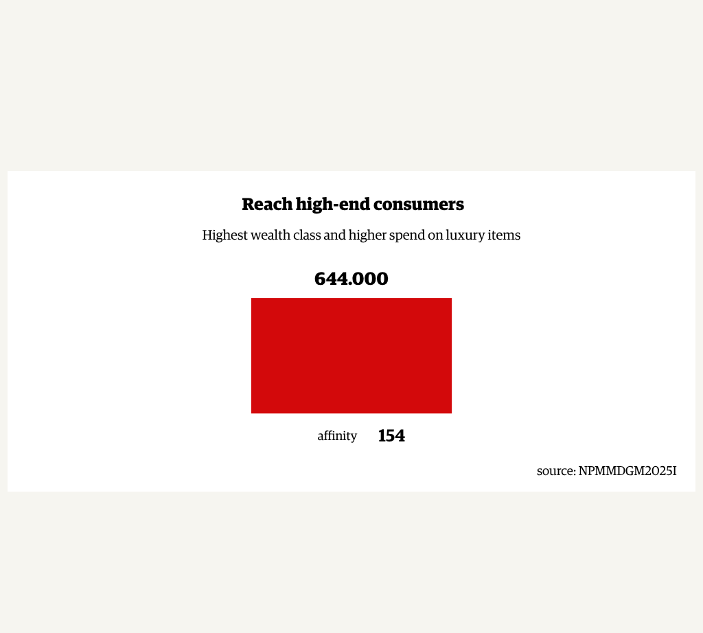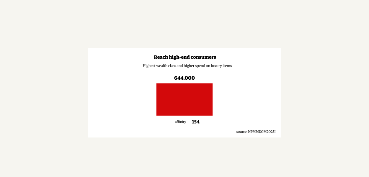 The NRC reader is quality-oriented, brand-loyal, and willing to invest in valuable products and services. Advertising with NRC means your brand is seen in a context of substance and trust — without loud promotions or distractions. This enhances the credibility of premium propositions, strengthening both branding and conversion.
